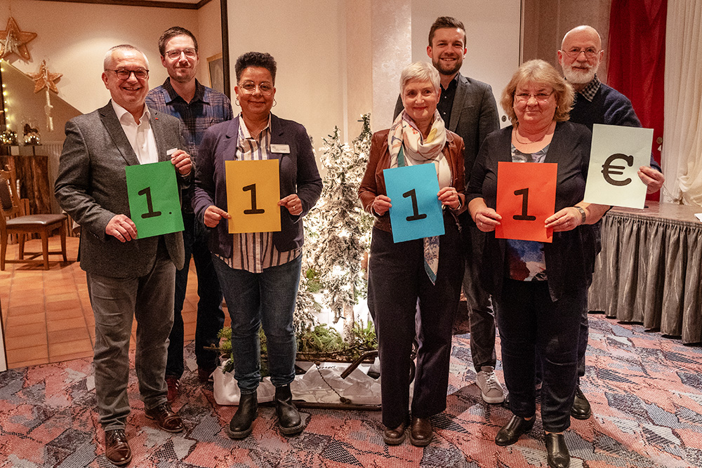 Einmal im Jahr organisiert der SPD-Ortsverein Ratzeburg einen Pflanzenflohmarkt auf der Schlosswiese in der Kreisstadt und spendet den Erlös an eine soziale Einrichtung. Die Einnahmen und Spenden vom 3. Oktober 2025 von 1.111 Euro gingen dieses Mal an die TagesINSEL Mölln. Deren Einrichtungsleiterin Julietta Fricke-Scheel und die Geschäftsführerin Wiebke Hargens bedankten sich auf der Weihnachtsfeier der SPD bei Uwe Martens, Dennis Haase, Oliver Blank, Erika Maeder und Klaus-Peter Roggon für die großzügige Unterstützung. Daher gab es auf dem anschließenden Pressefoto auch nur glückliche Gesichter zu sehen.